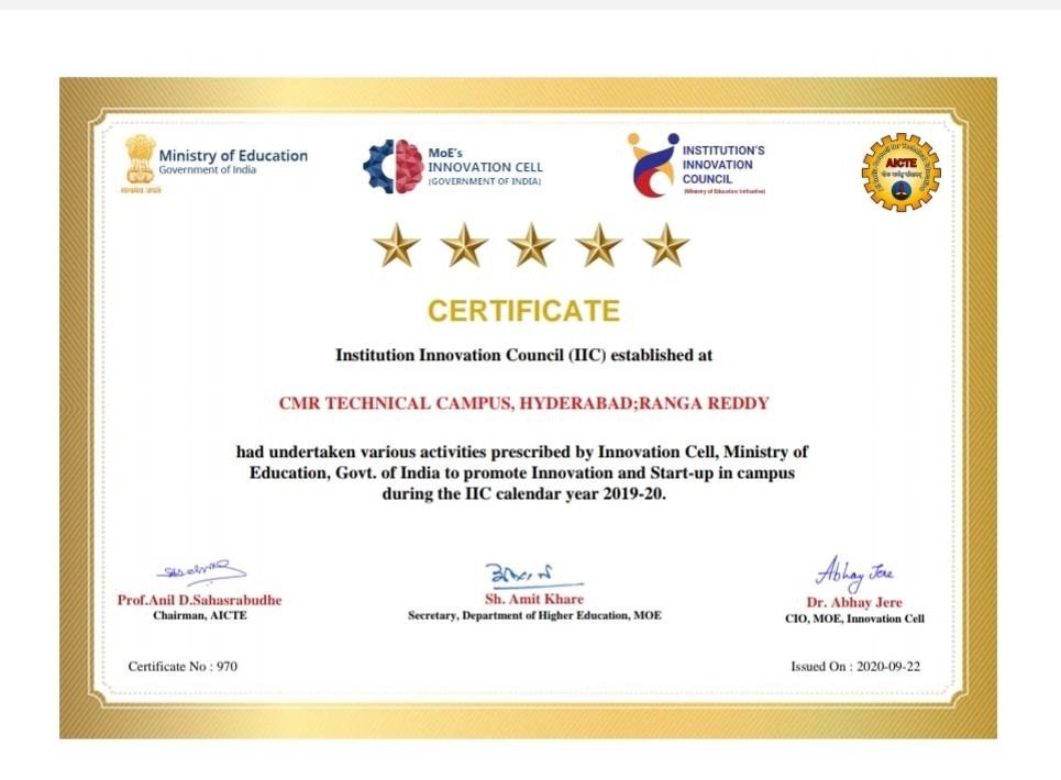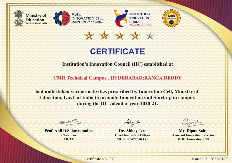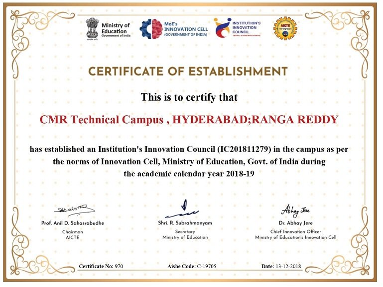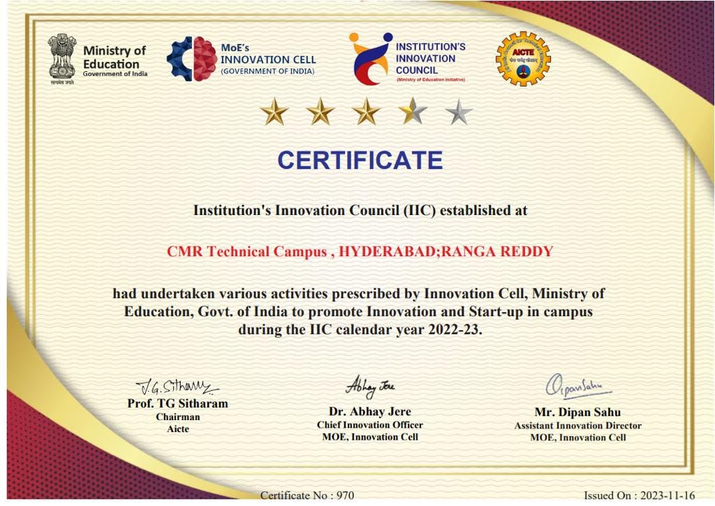 Ministry of Education, Govt. of India has established its ‘Innovation Cell’ at All India Council for Technical Education with a purpose of systematically fostering the culture of Innovation in all Higher Education Institutions (HEIs) across the country. MoE’s Innovation Cell (MIC) is focusing to create and strengthen the culture of Innovation and entrepreneurship ecosystem across all HEIs to enable them in promoting and supporting student innovations and sustainable start-ups from academic institutions.