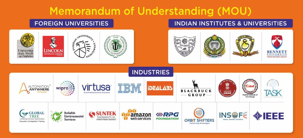 For an institute to explore happenings around the world technologically and to update its student and faculty fraternity, it is very much necessary to proceed with collaborations and Memorandum of Understandings [MoUs] and Associations [MoAs], even all such programs where international exposure has become obligatory. CMR Technical Campus has always been proactive in signing MoUs with national and global institutions/ universities/ Corporations in the nature of Training, Certification, Joint research, Student exchange, Faculty development programs, Conference & Webinars. CMRTC is currently executing 50+ active MoUs with different organizations of National & International repute.